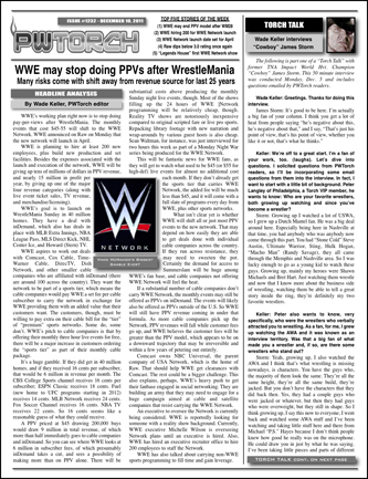 "Just wanted to commend you for the 12/6 Keller Hotline update. The way you discussed the effect of the WWE Network is why I subscribe to the Torch and I also appreciated the fact that you strayed away from the MMA talking point that I feel many people use as too much of a crutch to discuss the decline of PPV buys. Well Done, Wade."