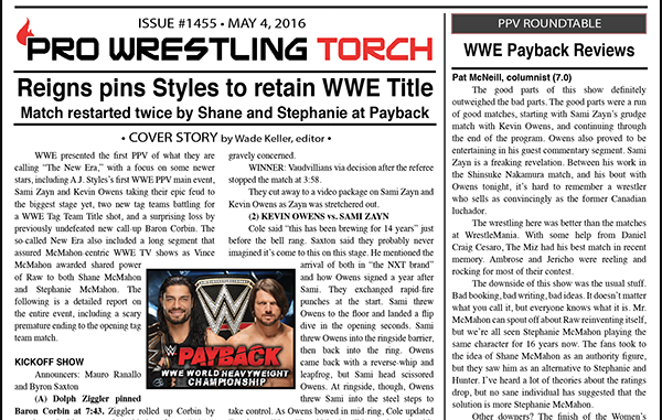 SUMMARY: This week’s newsletter begins with Wade Keller’s in-depth report on WWE Payback followed by the PWTorch staff’s Roundtable Reviews and Scores for Payback… Torch Newswire includes Ryback’s big stand… Keller’s detailed Raw Report with analysis… Greg Parks’s feature column on the history of screwjob finishes in pro wrestling… Bruce Mitchell’s feature column on Ryback… Keller’s End Notes with his reaction to Ryback’s stand…