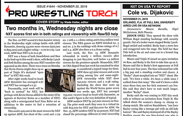 SUMMARY: This week’s PWTorch Newsletter includes Wade Keller’s Cover Story on the latest in the AEW vs. NXT ratings battle with NXT scoring a win this week in total audience and rating… Keller’s reports on NXT, AEW Dynamite, Raw, and Smackdown… Greg Parks looks at how wrestlers on the sidelines in WWE could really provide a spark now… Ringside Beat… Torch Newswire… And more…