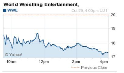– Thursday, October 29: WWE shares closed at $17.39 on financial day, down 13 percent from Wednesday’s closing of $19.95.