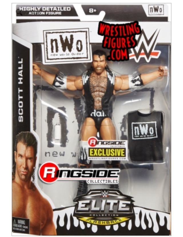 (3) Scott Hall Ringside Collectibles Exclusive. Give the folks at Ringside Collectibles credit: they know what their customers want. They’ve been teaming with Mattel to offer limited edition exclusive figures since 2010, and almost all of them have gone on to at least triple in value on the secondary market. In 2015 Ringside Collectibles offered exclusives of Shawn Michaels and Hulk Hogan, but it was this figure of Scott Hall decked out in NWO attire that really stood out. The figure is still available at ringsidecollectibles.com for $24.99.