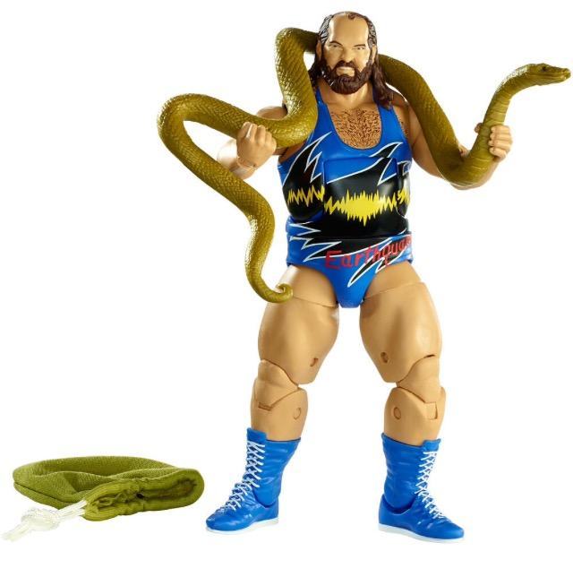 (7) Earthquake Elite Series 35. Big John Tenta was a headliner almost as soon as he entered the WWF in late 1989. He feuded with Ultimate Warrior and was one of the last monster heels fed to Hulk Hogan. But Mattel added an interesting twist for ‘Quake’s debut figure: Damien the snake and a bag, capturing the infamous angle in which Earthquake squashed Jake Roberts’s beloved python before turning Damien into Quake Burgers for Lord Alfred Hayes.