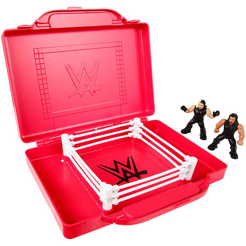 A miniature ring that folds up into a Money in the Bank-style briefcase is available for $15-20. It comes with mini figures of Reigns and Rollins.