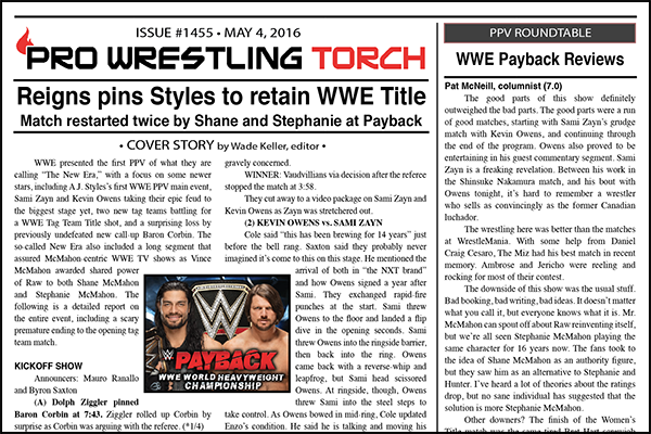 SUMMARY: This week’s newsletter begins with Wade Keller’s in-depth report on WWE Payback followed by the PWTorch staff’s Roundtable Reviews and Scores for Payback… Torch Newswire includes Ryback’s big stand… Keller’s detailed Raw Report with analysis… Greg Parks’s feature column on the history of screwjob finishes in pro wrestling… Bruce Mitchell’s feature column on Ryback… Keller’s End Notes with his reaction to Ryback’s stand…