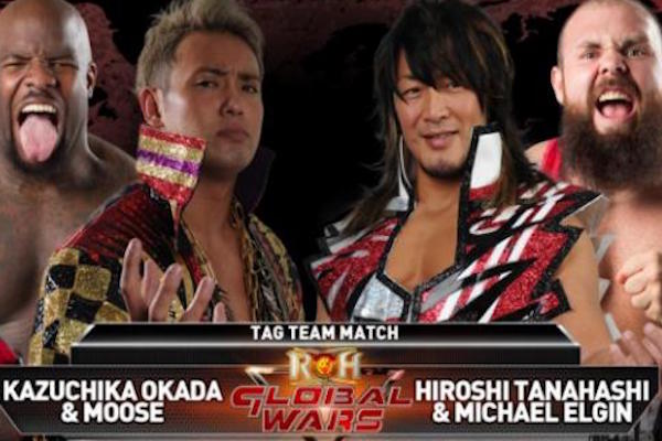 (5) Kazuchika Okada (w/Gedo) & Moose (w/Stokely Hathaway) beat Tanahashi & Michael Elgin.