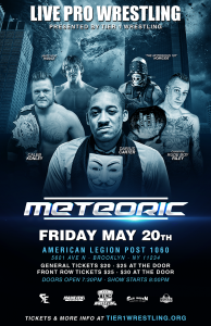 – Tier One Wrestling (Brooklyn, N.Y. – Floyd Bennett American Legion – 8:00 p.m. – Event/Ticket Info)