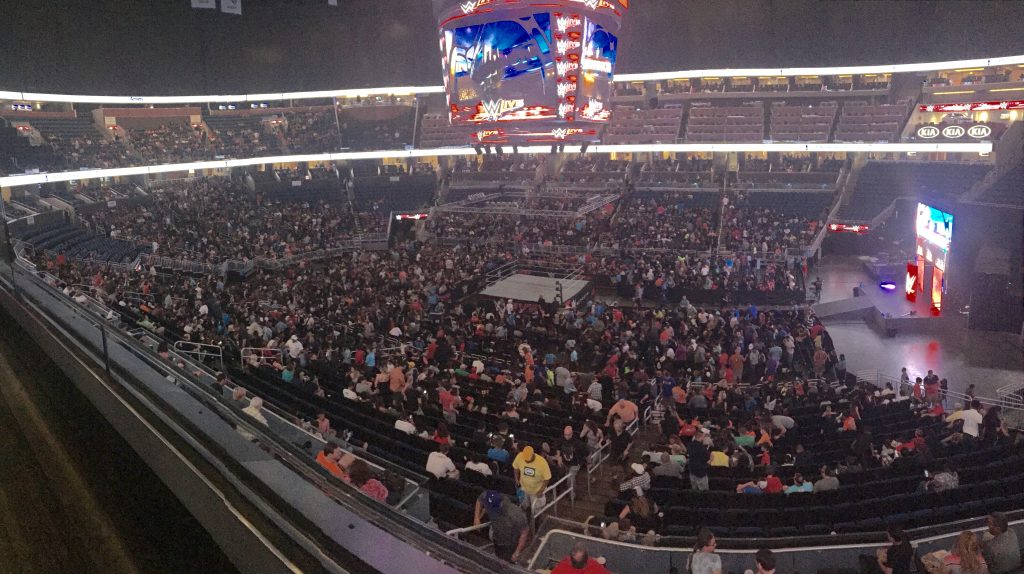 The demographic was obviously different than that of Royal Rumble at this same venue. It was mostly families and parents with small children. Would guesstimate attendance around 5,000 or so. Pretty good on a Sunday night.