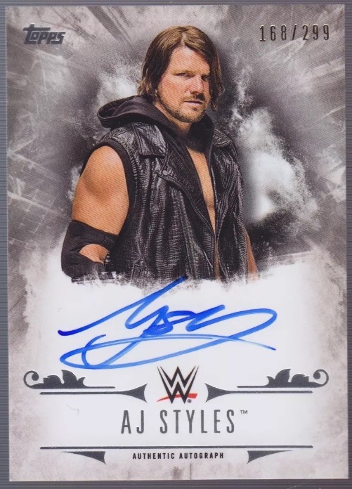 Topps wasted little time in getting Styles into its WWE products. His autograph was included in 2016 Topps WWE Undisputed in July, and the basic version (serial numbered to 299) typically sells for $35-45. Collectors can find plenty of cheaper autographs and memorabilia cards of Styles from TRISTAR’s TNA line from 2008 to 2013.