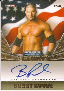 Roode’s best card is his 2013 TNA Glory autograph, which is one of the few sets that features on-card signatures instead of sticker autos. The basic version of this card is serial numbered to 199 and can usually be found for $12 or less.