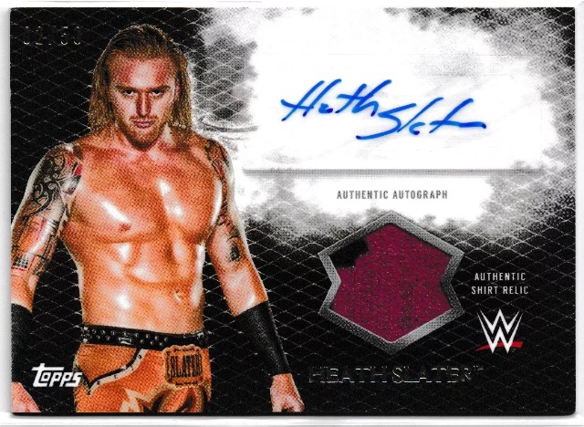 Slater, as part of the first NXT cast, first appeared in Topps’s 2010 WWE Platinum set. His best card is an autograph/relic card from 2015 Topps WWE Undisputed, which can be found for under $10.