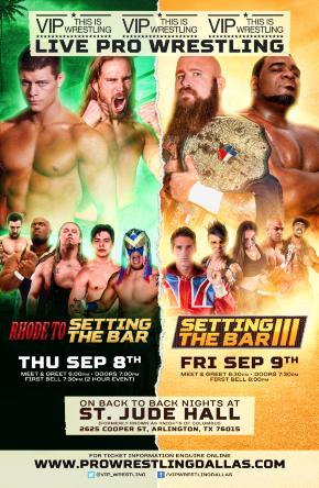 Cody Rhodes headlines a big weekend tour for VIP Wrestling in the Dallas, Texas area.