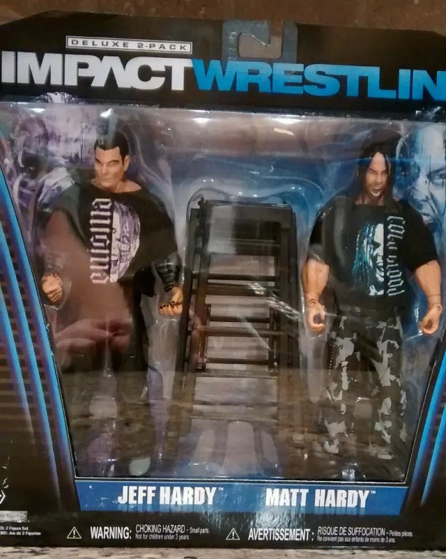 (2) Matt and Jeff Hardy Twist of Hate Ringside Collectibles Exclusive. For months, Abyss promised that “they” were coming on 10-10-10. “They” turned out to be Hulk Hogan’s heel Immortal stable, which by early 2011 included the reunited Hardy Boyz as bad guys. Ringside Collectibles and ShopTNA sold this exclusive two-pack of figures, which may be the only time Matt and Jeff have been packaged together as heels.