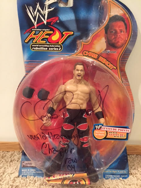 “I have a Chris Benoit signed figure in the box and wanted to see if you knew its worth. I’m interested in selling it. It was given to me so I do not have a letter of authenticity.” – Torch reader Kathleen King