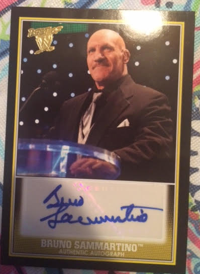 That particular card is an autograph from 2013 Topps Best of WWE. It typically sells for around $25. It’s noteworthy because it was the first WWE card of Bruno in nearly 20 years, after he was inducted into the WWE Hall of Fame in 2013. He has since signed for several more Topps WWE sets.