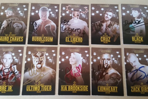 Earlier this year, Cabral launched Golden Stars (@GoldenStarsUK on Twitter), a trading card set of some of the top wrestling talent in the UK, including Zack Sabre, Jr., Lionheart and El Ligero, among others. Each card features a close-up profile pic and is signed by the wrestler.