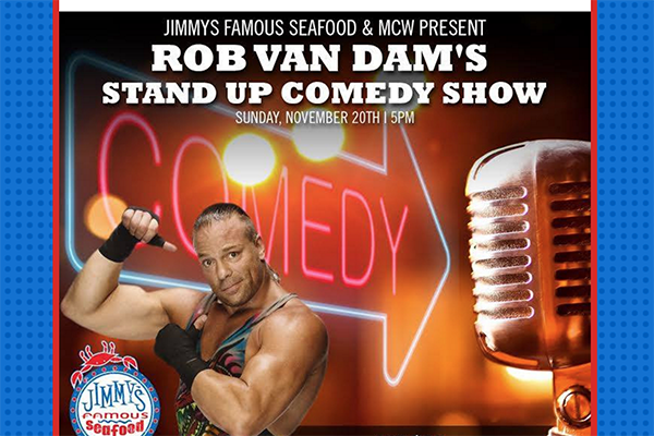 -Rob Van Dam is hosting a comedy show this Sunday, Nov. 20 in Baltimore, Md. at Jimmy’s Famous Seafood. Tickets available at MissionTix.com. The show starts at 5 p.m., so just in time to catch the show and watch the last few hours of Survivor Series on WWE Network.
