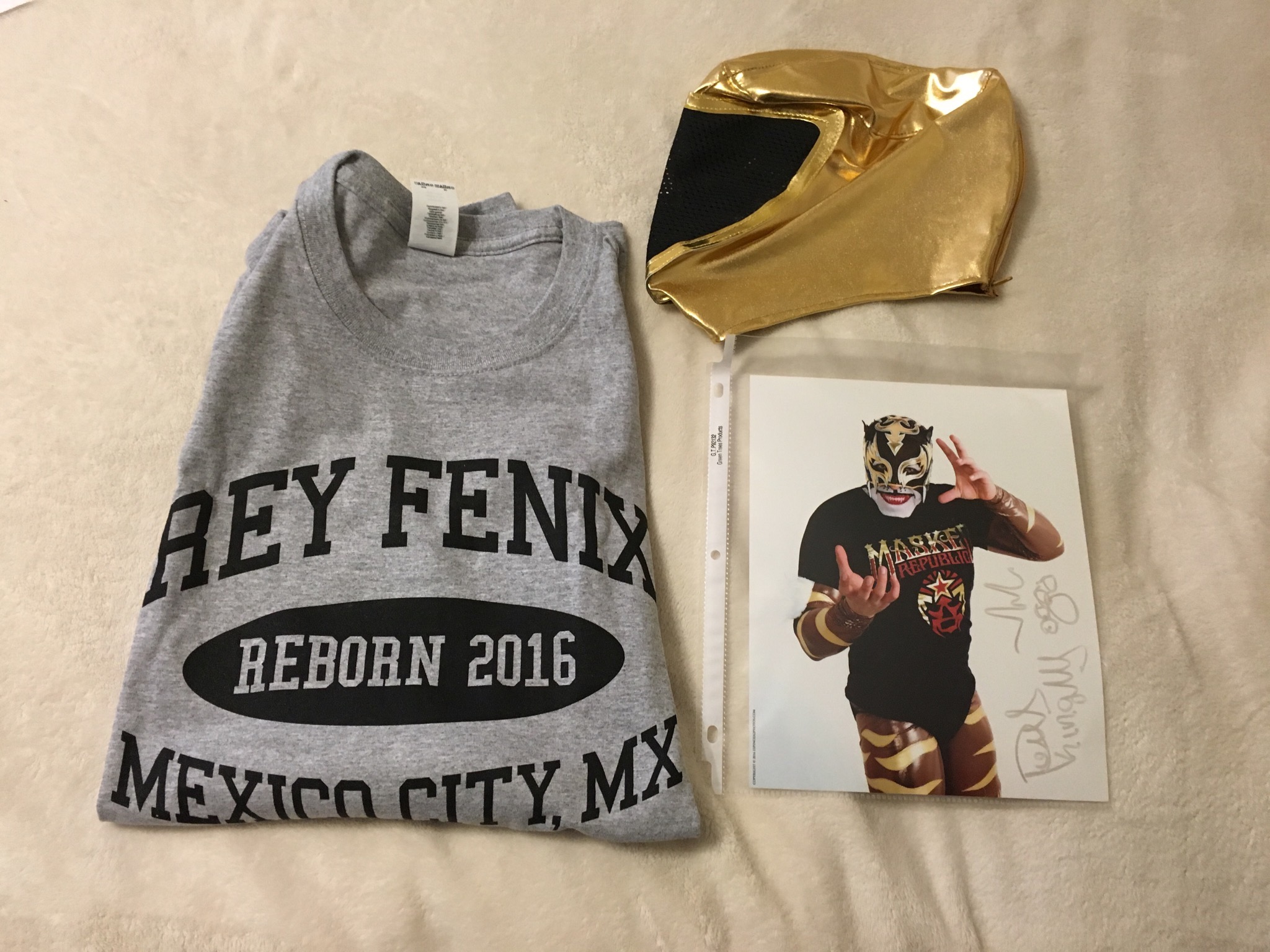 The Deluxe Booty Chest comes with extra items, but no matter which chest you order, you will a high quality mask, t-shirt, a copy of Rudo Can’t Fail, and a signed 8×10. One of the items in your box will be an item that has never been released to the public previously.