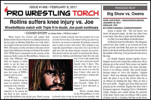 SUMMARY: This week’s PWTorch Newsletter begins with Wade Keller’s cover story on Seth Rollins’s knee injury… Bruce Mitchell’s column with “liner notes” on WWE Network’s new “Hidden Gems 2” collection… Wade Keller’s column reacting to the XFL documentary on ESPN… Greg Parks’s column on wrestlers getting second chances in WWE… Plus Keller’s Raw and Smackdown TV reports… Newswire… Ringside Beat…
