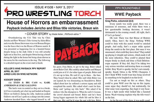 SUMMARY: This week’s PWTorch Newsletter begins with Wade Keller’s detailed report on Payback and Roundtable Reviews from the Torch staff… Columns by Bruce Mitchell (on Roman Reigns again) and Greg Parks (on the way babyfaces and heels are booked in WWE)… Keller’s reports on Raw and Smackdown… The Torch Newswire