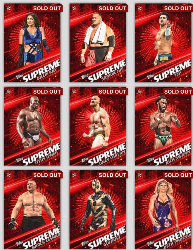Austin Aries was granted his release from the WWE earlier this week; Topps actually seemed like they knew before the rest of the world, as his base cards sold out a couple of hours before the press-release from WWE was announced. Interesting, apparently Aries was scheduled for this week’s Topps Archives release and some of those cards made it into packs and into collector’s hands. They immediately sold out after a few copies were released, and for a while they were untradeable. There’s both a red and blue version. They won’t be required for the award, as a new Liv Morgan card was released on Thursday as well.