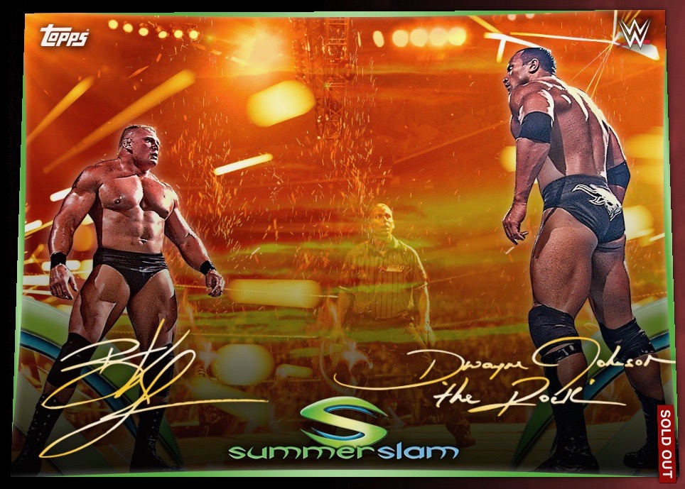 Topps actually started the SummerSlam collecting season with a two variant Rock/Brock Lesnar signature card that sold out quite quickly. The Gold variant with only 50cc immediately shot up to prices near $80, I’d definitely call that elite.