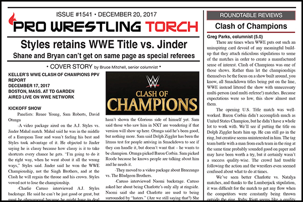SUMMARY: This week’s PWTorch Newsletter begins with Wade Keller’s WWE Clash of Champions PPV report and the Torch Staff Roundtable Reviews and Scores… Keller’s Raw and Smackdown reports… Keller’s report on the final two matches on the ROH PPV… Torch Newswire… Greg Parks’s feature column on the possible return of Vince McMahon to pro football…
