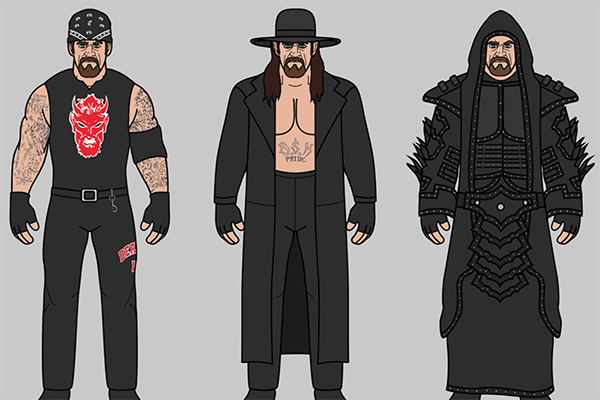 -As pro wrestling fans debate which incarnation of Undertaker they want to see face John Cena at WrestleMania this year, Fun.com has put together a really cool series of illustrations of Undertaker’s various looks over the years. A sample is included below, but click the link to see all of them.