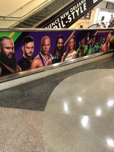 Today in New Orleans proved how the times have changed. After landing, the droves of wrestling fans walked off the plane and filtered in with their brethren near the baggage claim area. The WWE and WrestleMania owned the place. Posters lined the stairwells, Roman Reigns’s face was plastered above the escalator, and the ten plus cylinder posts near the taxi stand were each lathered up with WWE superstars.