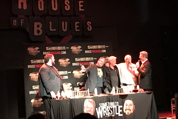 The rise of wrestling podcasts has been a phenomenon in the past five years, and the king of all of these shows has been Something to Wrestle with Bruce Prichard, Vince McMahon’s right-hand man for decades. Prichard is a tremendous storyteller, and his uncanny imitations of wrestling personalities are hilarious. His cohost, Conrad Thompson, is called the Podfather for his magic touch in creating hit podcasts. They have taken their show on the road, and they arrived in New Orleans on the Road to WrestleMania. Here are some live news and notes from the show.