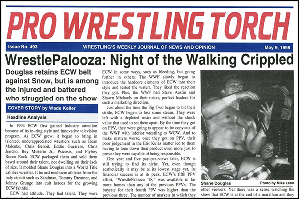 SUMMARY of #493 cover-dated May 9, 1998: This issue headlines with a cover story on WrestlePalooza… Keller’s ECW WrestlePalooza PPV match report with star ratings, roundtable reviews, and reader reax with poll results… Mitchell’s column on Hulk Hogan’s masterful manipulation of WCW’s backstage politics… Plus reports on Raw, Nitro, ECW, and All Japan Tokyo Dome, Keller’s End Notes, and more…