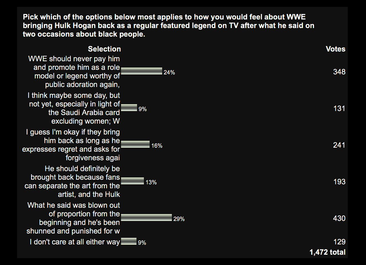 Another instance of racially charged comments came out when a transcript was released, also in 2015, of Hogan telling his son Nick in a 2008 conversation when his son was in jail that if he and his son were reincarnated, “I just hope we don’t come back as a couple, I don’t want to say it, blizz-ack gizz-uys, you know what I’m saying?” A more detailed transcript was reported by BayNews9 in 2015.