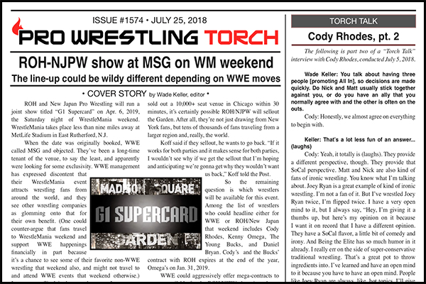 SUMMARY: This week’s PWTorch Newsletter includes Wade Keller’s cover story on the announcement of a New Japan-ROH show at MSG on WrestleMania weekend next year… Keller’s End Notes editorial on Hulk Hogan’s flawed apology backfiring… Bruce Mitchell’s column with a guide to the WWE Network Vault and what territory content to focus on… Greg Parks’s column looking at who has benefited from the Superstar Shake-up so far… Keller’s NXT TV Reports… Keller’s Raw report… Mike McMahon’s Slammiversary PPV report… More…
