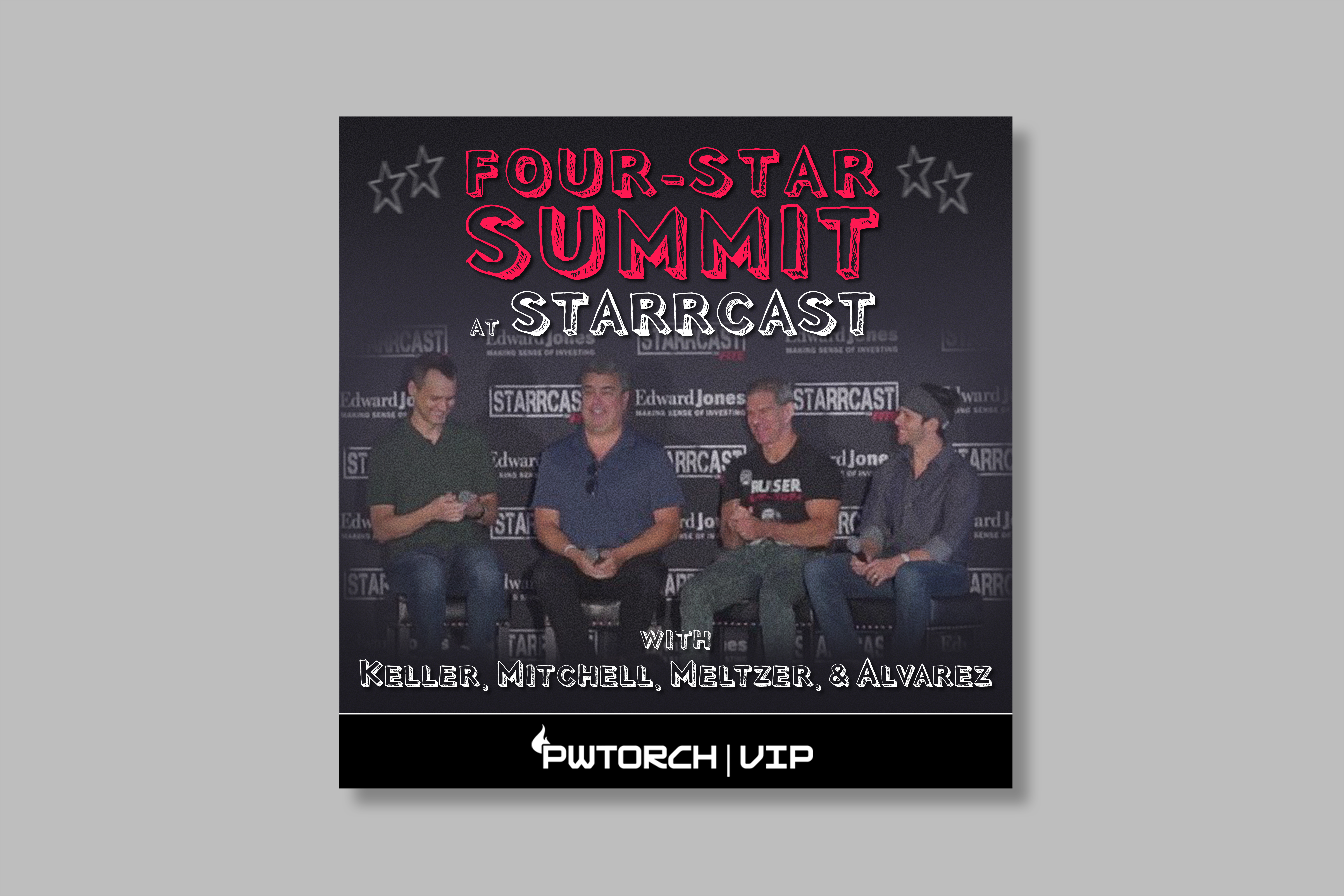 SHOW SUMMARY: In special audio feature, VIP members can listen to the Four-Star Summit at Starrcast taped on Friday, August 31 featuring PWTorch editor Wade Keller and PWTorch senior columnist Bruce Mitchell together on stage with the Wrestling Observer Figure-Four duo of Dave Meltzer and Bryan Alvarez together for first-time ever talking All In weekend and doing a Q&A with live audience of fans in Chicago at the Hyatt Regency Schaumburg as one of the featured events of the weekend.
