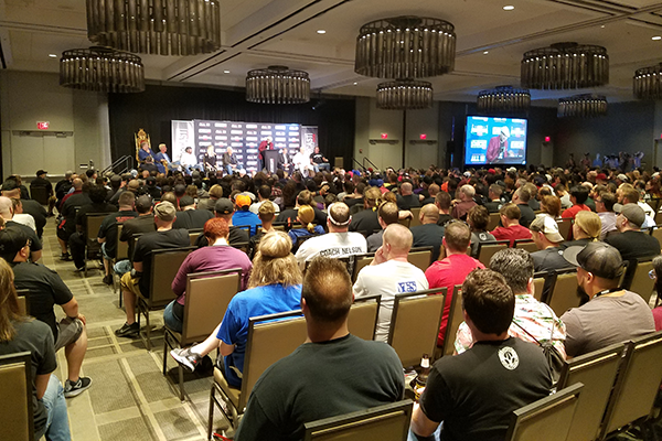 After resting up at the hotel we came back for the weigh-ins. We got to Starrcast at about 10 minutes before the weigh-ins were supposed to begin. We waited in what we thought was the line to get in before we were told by other fans that they have hit capacity and are no longer letting people in. There was about 200 people waiting in line hoping to get in before being told they were at capacity. Many people were very upset and frustrated that they had waited for a long period of time being told the line was cut off. This was one of the marquee events at Starrcast and some people with platinum and gold bracelets were not allowed in. I witnessed a couple fans who had platinum bracelets get very belligerent with Starrcast staff because they thought their bracelets guaranteed them seating to all events.