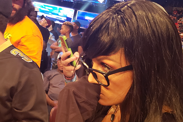 -I was seated in row 2, seat one, at ringside. Towards the end of the Charlotte vs. Deville match, a WWE employee asked if I could move over just a bit. When I looked to my right, Becky Lynch (in disguise) was standing shoulder to shoulder with me until she attacked Charlotte. Pretty cool moment.