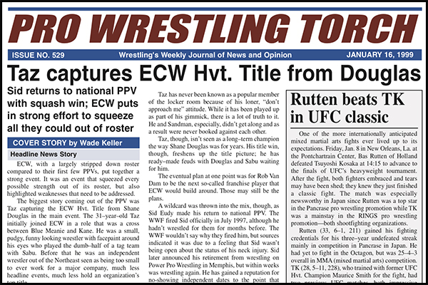 VIP 1999 BACK ISSUE – Pro Wrestling Torch #529 (January 16, 1999): Expanded WCW Newswire and WWF Newswire articles, Cover Story on ECW’s PPV, Keller’s in-depth annual ECW Roster Evaluation, more