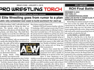 VIP NEWSLETTER – PRO WRESTLING TORCH #1596 (January 4, 2019) – Cover Story on AEW official announcement, Keller’s editorial on AEW launch, Parks on NXT Call-ups, Ringside Beat, ROH Final Battle, more