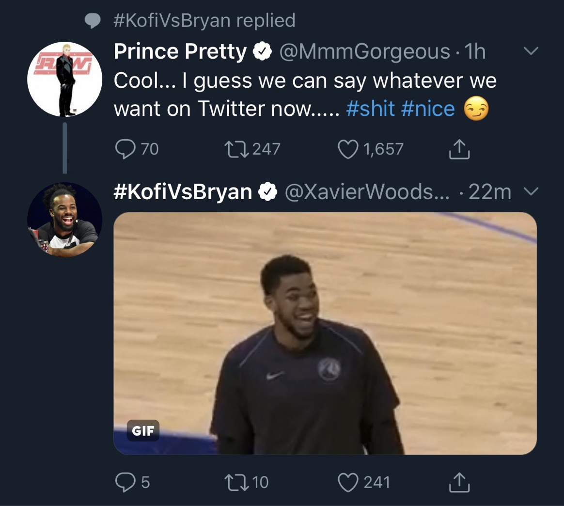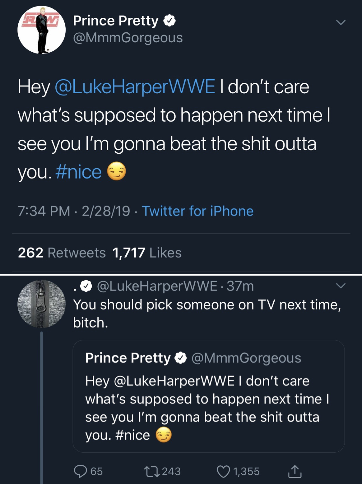 Tyler Breeze and Luke Harper had a funny exchange which started with Breeze reenacting Ronda and Becky’s Twitter feud by calling out Harper. Breeze and Harper have both since deleted these tweets.
