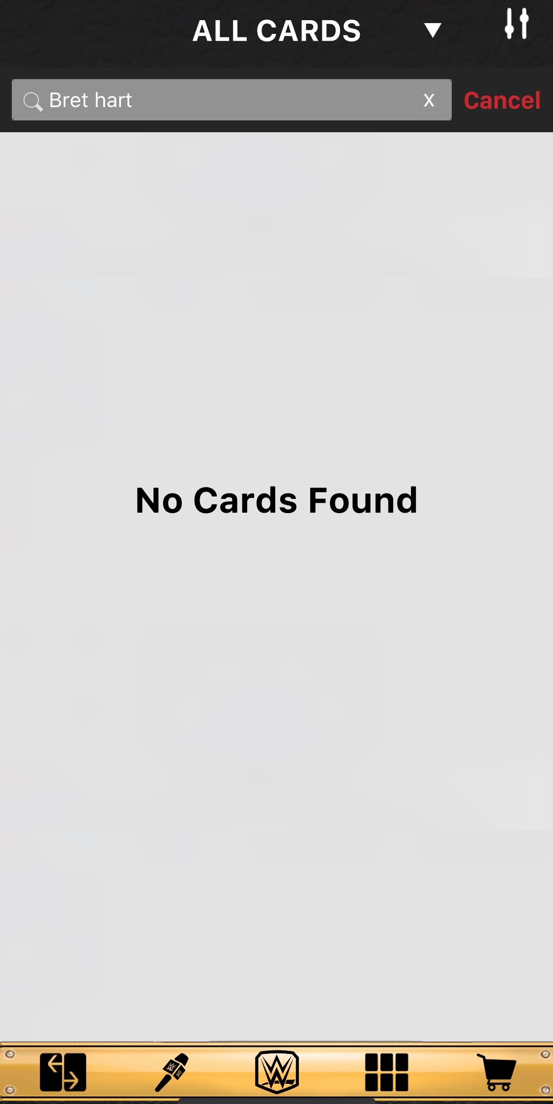 This is what appears when I look at “all cards” with the “cards I need” filter on, and searching for Bret Hart.