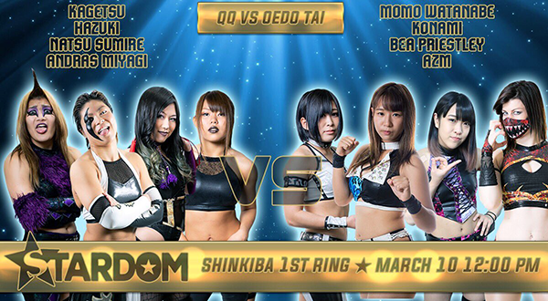 (5) OEDO TAI (World Of Stardom Champion Kagetsu, High Speed Champion Hazuki, Andras Miyagi, & Natsu Sumire w/Nao Yamaguchi) vs. QUEEN’S QUEST (Wonder Of Stardom Champion/Goddess Of Stardom Champion Momo Watanabe, Konami, AZM, & Bea Priestley)