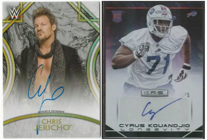 - Chris Jericho and Cyrus Kouandjio. Aside from each of their first names starting with the letter “C,” Jericho and Kouandjio don’t’ have a whole lot in common. Jericho is a wrestler with a career worthy of a legitimate hall of fame. Kouandjio was a second round pick out of Alabama by the Buffalo Bills in 2014 who made headlines for wandering around a field naked in 2017. And yet their awful signatures are nearly identical. Both autographs basically read “Cy,” and Jericho completes his with a loop while Kouandjio trails off with a straight line. Roll tide, maaaan.