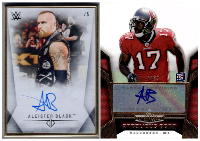 - Aleister Black and Arrelious Benn. Many collectors were excited for Black’s first autographed trading cards, but were left disappointed by his lazy “AB” signature. It’s nearly identical to the signature of Benn, a 2010 second round draft pick of the Tampa Bay Buccaneers who once went five years in between scoring two touchdowns.