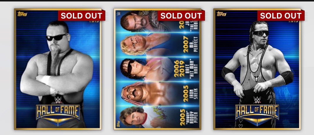 We got our first major drop of the week with the NXT Takeover base and signatures the same day, and boy did it enrage fans. Because it was the 4th major Takeover at ‘Mania or the 4th at Barclays, I’m not sure which, Topps decided that it’s highest level of rarity for the 2019 Takeover base and sigs was going to be limited to 4cc, which of course sold out in minutes due to the 18 card set size. Signatures also came in a 20cc and a 1250cc flavor, which really doesn’t make much sense, because there’s no middle ground between 20 and 1250. Also the set itself was pretty bland as Takeover sets tend to be. We’ve already got plenty of PPV cards for almost everyone there, and besides War Raiders, I don’t see a lot of new sigs either.