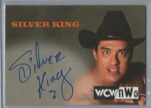 - Silver King 1999 Topps WCW Nitro Autograph. Silver King’s name has been in the news recently due to his tragic death in the ring during a match with Juventud Guerrera. Silver King first appeared on WCW television in 1992 as part of the NWA tag team title tournament, and then resurfaced during Nitro’s boom period in the 1990s. He also portrayed the masked villain in the Jack Black film “Nacho Libre” in 2005. Silver King was a much bigger star in Mexico. In 2010, he donned his mask for a second time and changed his name to Silver Cain as he feuded with real-life brother Dr. Wagner Jr. Silver King’s Topps WCW autograph was one of the more common cards in the set, and pretty consistently sold for around $25. Following his death, however, the value of the card will likely increase significantly.