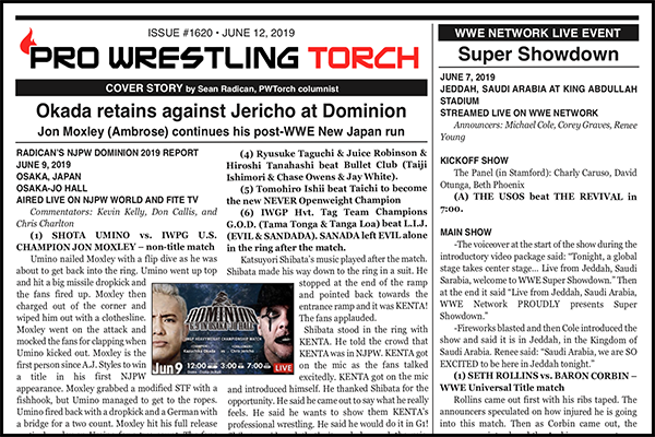 SUMMARY: This week’s PWTorch Newsletter includes Wade Keller’s WWE Super Showdown Report & Staff Roundtable Reviews, Sean Radican’s NJPW Dominion Report, Greg Parks column on WWE Network specials, Keller’s Raw & SD reports, Newswire, and more.