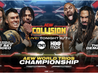 ALLYSIN KAY/ASHLEY VOX vs THUNDER ROSA/MARTI BELLE – HIT: Before the match started, Belle and Rosa were with Marquez at the podium going on about a woman they saw last week, a phoenix, she’s real, they know they saw her! Kay and Rosa are in a heated feud, and the ref has trouble keeping them at bay for the bell, but he eventually calls for it and for the early part, Ashley Vox was in control until Marti Belle destroys her with a tremendously sold pump kick. Belle and Rosa took control of the majority of the match and cut off the ring while isolating Vox. We get a hot tag in both corners and after slugging it out mid-ring. Top turnbuckle hijinx come near the end with some very strong clubbing forearm smashes between Thunder Rosa and Allysin Kay that led to a superplex and then that woman they saw! She’s here! She’s coming to the ring! Who is she?! She’s “a walking legend,” as Joe Galli stated and “a legend of women’s wrestling” came out of Cornette’s mouth – it’s Melina! (Did I see another Melina’s career? When did she become a legend?) It ends with those haunting drums that have been the beat to Thunder Rosa segments and the three women posing over our downed women’s champ, Allysin Kay.