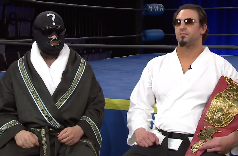 I won’t waste many lines on this. Stevens helped emigrate Question Mark to the U.S. as a thank you for being taught Mongrovian KAHRAHTAY and also began dressing Mark in his robe and towel. At the end of the day, they want all the belts because Shooter believes they deserve all the belts, but when confronted about actually defending his title, Stevens cuts the interview short. It’s fine. We heard this stuff last week, but we got KAHRAHTAY twice from Question Mark and we got to see him in Sandow’s old gimmick. I think that’s worth a mild hit.