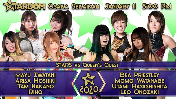 (6) STARS (World Of Stardom Champion Mayu Iwatani, Wonder Of Stardom Champion Arisa Hoshiki, High Speed/AEW Women’s Champion Riho, & Tam Nakano) vs. QUEEN’S QUEST (Bea Priestley, Leo Onozaki, & Artist Of Stardom Champions Momo Watanabe & Future Of Stardom/SWA World Champion Utami Hayashishita)