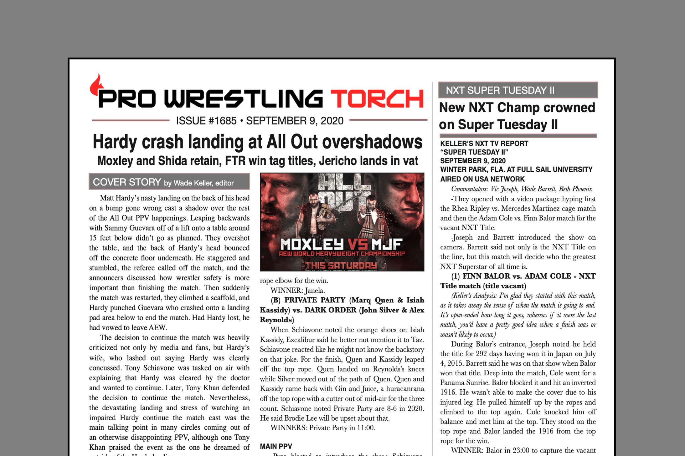SUMMARY: This week’s PWTorch Newsletter features Wade Keller’s AEW All Out PPV Report, Keller’s NXT Super Tuesday II report, a Bruce Mitchell column on Chris Jericho-AEW, a Greg Parks column on the lay of the land for more current champions, Keller’s Page 2 News, and more…
