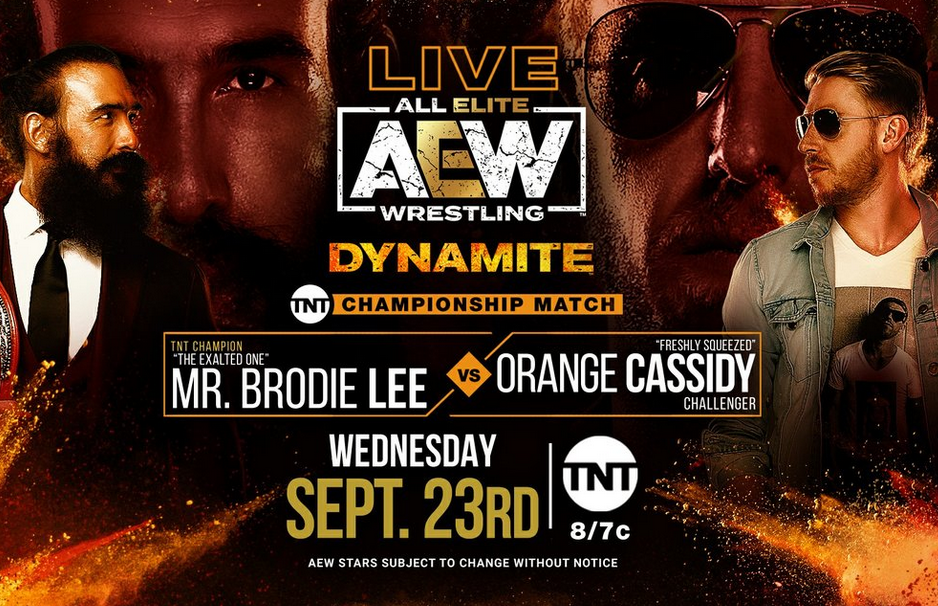 Orange Cassidy will challenge for the TNT Championship following a four win-streak that includes back-to-back wins over Chris Jericho. Mr. Brodie Lee defeated Cody Rhodes on August 13th to become champion, and successfully defended against Dustin Rhodes on the September 9th edition of Dynamite. This will be his second defense.